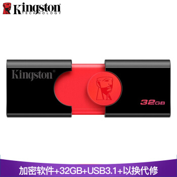 金士顿(Kingston)u盘 USB3.1 DT106系统投标车载高速U盘优盘 黑红款 精英版 32G |