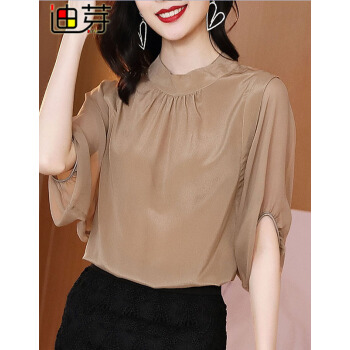 迪芽衬衫女2020秋季新品时尚韩版ins潮流纯色上衣宽松显瘦短袖圆领套头妈妈装8255 咖啡色 请拍正确尺码 |