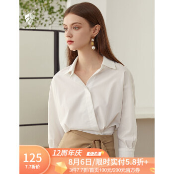 范思蓝恩 2020夏新款气质领上衣连袖衬衫女七分袖衬衣 白色 M |