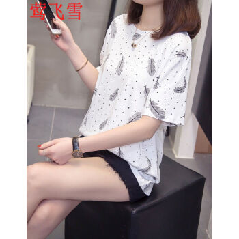 莺飞雪短袖t恤女2020夏季新款韩版宽松休闲学生大码女装显瘦百搭上衣打底衫女 白色6213 L(建议90-115斤) |