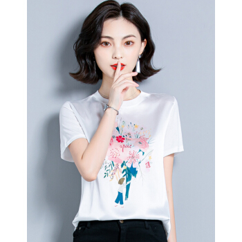 婪澈短袖T恤女2020女装夏季新款韩版时尚气质圆领印花衣服t恤女显瘦拼接上衣女 白色 请拍正确尺码 |