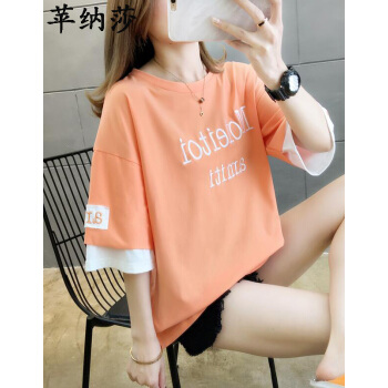苹纳莎 短袖T恤女2020夏季新款时尚韩版宽松学生百搭时尚上衣打底潮 桔色 L (建议100斤-115斤) |