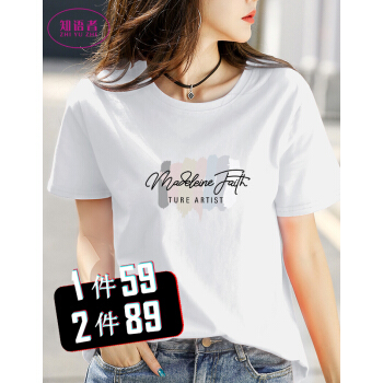 知语者女装短袖t恤女宽松体恤大码显瘦上衣2020夏季新款百搭韩版印花时尚纯色棉质t桖打底T恤女 圆领白色 L《105-115斤》 |