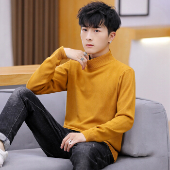 毛衣男半高领潮青年学生套头针织衫打底衫韩版修身休闲毛线衣 113黄色 165/80A