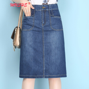 MUSHE原创轻奢 牛仔半身裙女2020夏季新款时尚百搭高腰显瘦简约舒适开叉中长款一步包臀裙 蓝色 L |