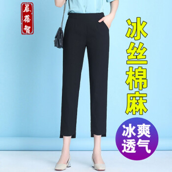 晨蓓智cbz休闲裤女2020新款冰丝棉麻哈伦裤女春夏季薄款九分裤直筒高腰宽松显瘦大码胖MM萝卜裤 黑色九分裤 M【建议90-105斤】 |