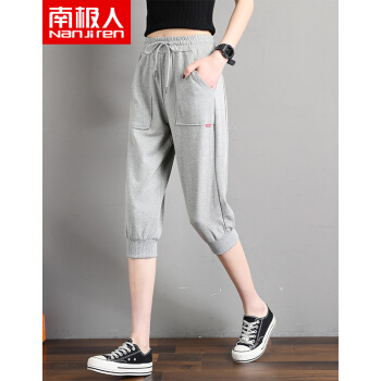 南极人 七分裤女夏季新款韩版宽松时尚运动棉休闲百搭七分中裤显瘦减龄气质休闲裤 JY305 浅灰色 请拍正确尺码 |