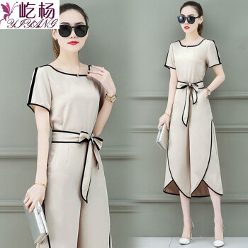屹杨阔腿裤女套装女夏装2020新款显瘦时尚套装女小矮个子显高搭配两件套装休闲裤女 杏色 (尺码勿拍,请拍自身对应尺码) |