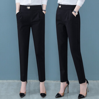 茉玥女裤松紧腰休闲裤女2020夏季薄款气质宽松大码女装小脚裤韩版九分裤女士夏装黑色裤子哈伦裤 黑色 请拍下正确尺码 |