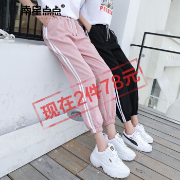 南星点点棉麻休闲裤女冰丝九分哈伦裤2020夏裤子韩版新款侧条纹学生原宿bf束脚裤子女 粉色 M |