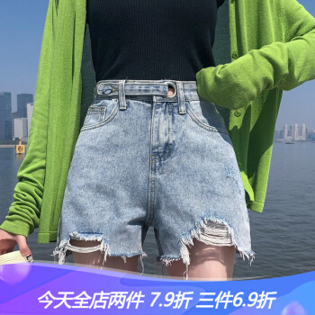 沫澜仟衣破洞牛仔短裤女2020夏季薄款韩版高腰显瘦休闲百搭裤子女网红阔腿a字热裤潮 2039浅蓝 XS |