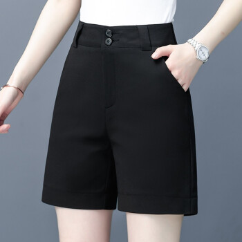 吧吆吆白色短裤女夏宽松2020新款高腰直筒西装五分中裤显瘦阔腿休闲裤薄 黑色 XL |