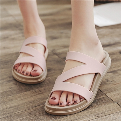 【防滑垫】日系简约舒适按摩点浴室防滑情侣凉拖鞋【EVA/浅粉】