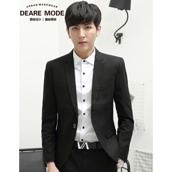 DEARE MODE西服男韩版修身小西装男士休闲单西加肥大码外套胖子春秋装新品 DXZ8052黑色 L--建议115斤左右穿 |