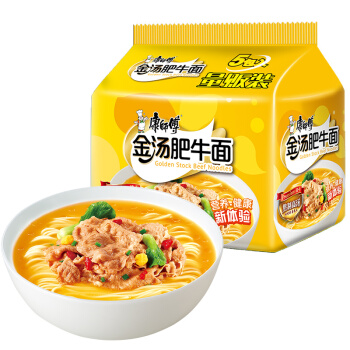 康师傅方便面熬制高汤金汤肥牛面袋面泡面五连包休闲零食 即食面 |