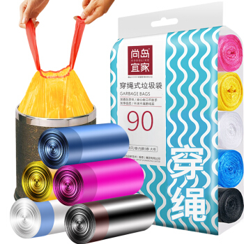 尚岛宜家 抽绳手提式垃圾袋 90只装 中号45*50cm*5卷 加厚 自动收口大垃圾袋 家用办公分类垃圾桶袋 |