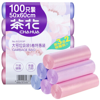 茶花垃圾袋加厚100只中大号50*60cm分类家用厨余厨房清洁袋垃圾桶方便收纳袋 B3203P |