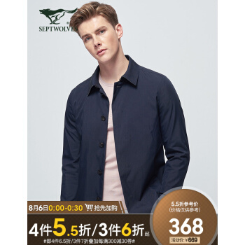 【双防面料】七匹狼风衣2020新品男装翻领单排扣商务休闲男士衣服风衣外套男装衣服正品 101(藏青) 175/92A/XL |
