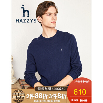 【商场同款】哈吉斯HAZZYS 春秋针织衫男纯色简约百搭针织ABYZD08CX01 藏青色NV 185/104A110 52 |