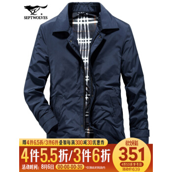 七匹狼风衣男中长款2020秋季新款中年修身韩版帅气加棉保暖休闲夹克外套潮 102(深蓝) 175/92A/XL |