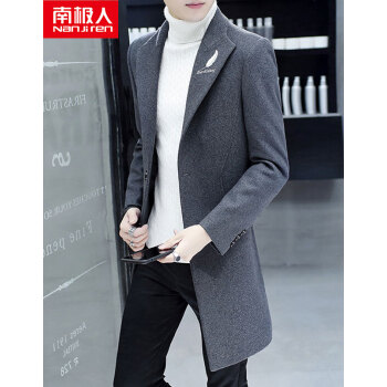 南极人风衣男中长款韩版修身帅气2019秋冬新款男士羊毛大衣秋款外套 868/灰色 175/XL |