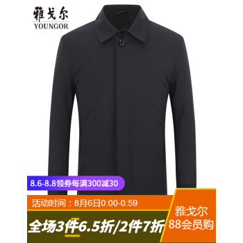 雅戈尔 风衣男 男士长风衣 男士风衣外套 外套 商务休闲 墨绿 185/104A |