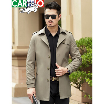 卡帝乐鳄鱼2020秋冬新款风衣夹克男 中青年商务翻领英伦风修身秋季防风可选冬季加厚保暖男士中长款外套 卡其春秋款 XL(180) |