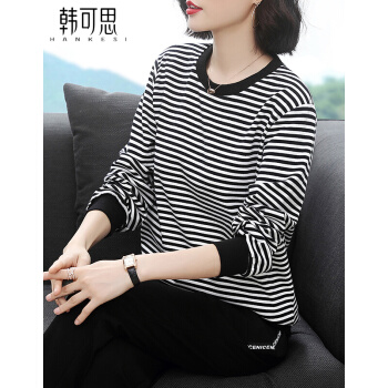 【精选好货】韩可思妈妈运动套装女洋气春秋装条纹休闲2020新款韩版气质四十岁宽松百搭中年长袖两件套 黑色上衣 请拍准确尺码或咨询客服 |