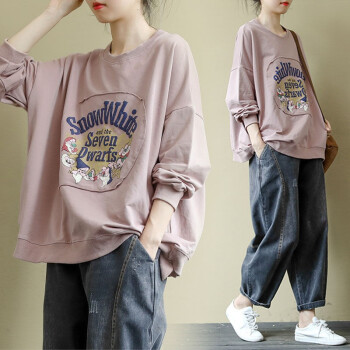 卫衣女宽松韩版学生文艺长袖2020秋冬季加绒休闲印花圆领套头上衣外套 粉紫色 XL110-125斤 |