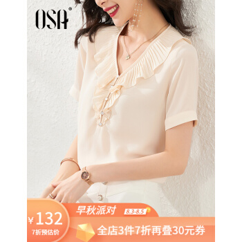 OSA女士短袖雪纺衫夏季2020年新款欧洲站时尚洋气遮肚子小衫上衣 浅杏色 S |