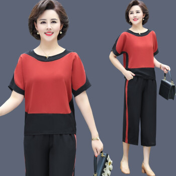 涂蝶幽 妈妈夏装运动服套装两件套2020新款洋气减龄中老年女装人短袖上衣服女 红色 2XL (105-115斤) |