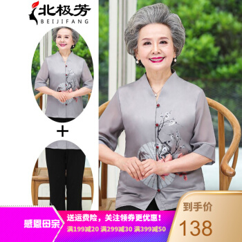 北极芳 中老年女装奶奶装夏装套装印花妈妈装衬衫2020老年人女士中长袖中国风衬衣 093-2024 灰色套装 2XL【105-120斤】 |