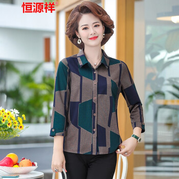 恒源祥中老年妈妈女装春秋新品衬衣女士薄款长袖七分袖衬衫时尚百搭宽松大码开衫老年人奶奶上衣 2101绿色 2XL建议100--115斤 |