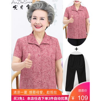 安贞雪中老年女装奶奶装夏装翻领衬衫2020夏季老年人女士朴素碎花衬衣开衫妈妈装老太太衣服LL3405 红色两件套装 3XL建议125-145斤 |