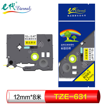 e代(eternal)标签带 12mm标签纸色带 TZe-631 适用兄弟标签机色带 12mm黄底黑字 TZe-631 |