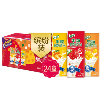 伊利 优酸乳果粒酸奶饮品饮料(草莓+黄桃+芒果)245g*24盒/箱(礼盒装) |