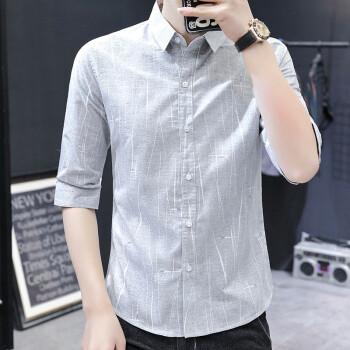 ED.HD衬衫男2020夏季新款短袖衬衫男士五分袖衬衣时尚休闲韩版男装潮流衣服 6028浅灰色 XL |