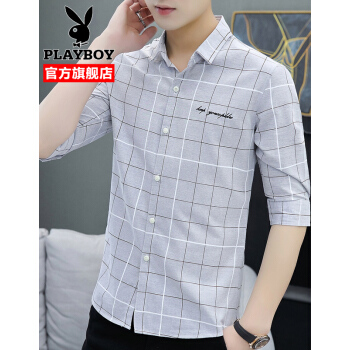 衬衫男士2020夏季新款韩版修身潮牌翻领中袖衬衣外套夏装青年男装寸衫上衣 灰色 XL |