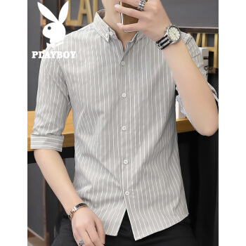 短袖衬衫男2020夏季新品透气韩版条纹衬衣男装青年薄款宽松休闲外套五分袖上衣服 6023灰色 M |