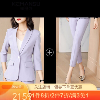 珂曼苏品牌女装紫色小西装套装女2020年秋季气质休闲职业西服外套韩版名媛小香风 西装+裤子 S |