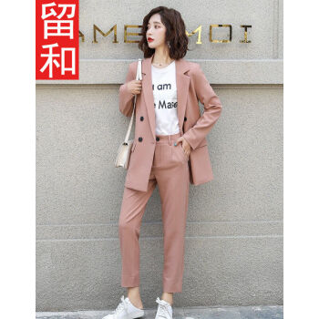 留和 小西装外套女2020秋季新品休闲职业装女装套装时尚款修身小个子工装外套X9911 粉色 L |