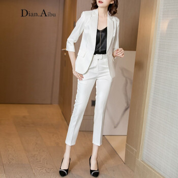 Dian.Aibu品牌小西装套装女2020年夏季白色小西服外套女气质时尚职业装英伦风 图片色 S |