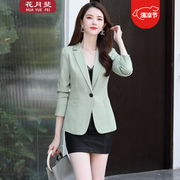 花月斐小西装女2020秋季新款西服时尚一粒扣个性长袖OL通勤西服小外套女005 绿色 L |