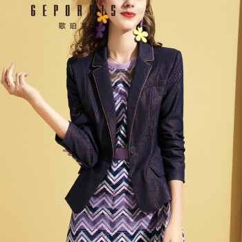 歌珀莱品牌女装时尚休闲西装外套2020秋季新款复古亮丝西服女上衣 深蓝色 S |