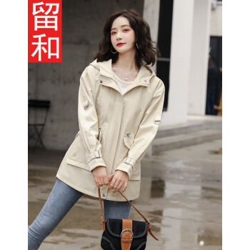 留和 短外套2020秋装新款女装时尚休闲连帽女士风衣外套女F6607 米色 L |