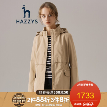 【商场同款】哈吉斯HAZZYS 秋季时尚简约纯色连帽女士长袖外套ASVSU09CU01 米色BI 165/88A 40 |