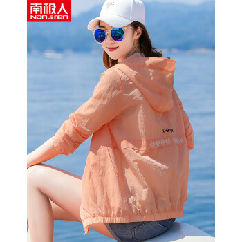 南极人 防晒衣女长袖连帽2020夏季新款防晒服洋气刺绣宽松显瘦薄外套短款空调防晒衫潮 N1-GT102-3210-橙色 L |