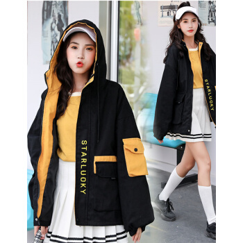茵美伊 短外套女2020春秋女装大码韩版百搭BF棒球服工装学生外套女 黑色 M |
