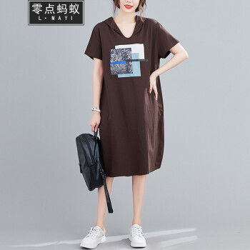 零点蚂蚁大码女装胖mm休闲简约韩版宽松遮肉连衣裙胖妹妹夏装连帽中长款t恤裙子胖人女装 图片色 均码【100-180斤】 |