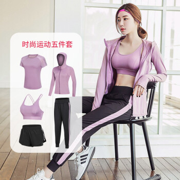 VACK 瑜伽服女运动套装夏季新款专业运动跑步健身房初学者速干衣网红夏健身服运动服五件套 豆沙紫(五件套) XL |